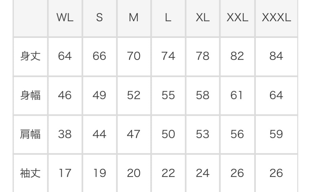 サイズはS〜XLでサイズ表をご確認下さい。